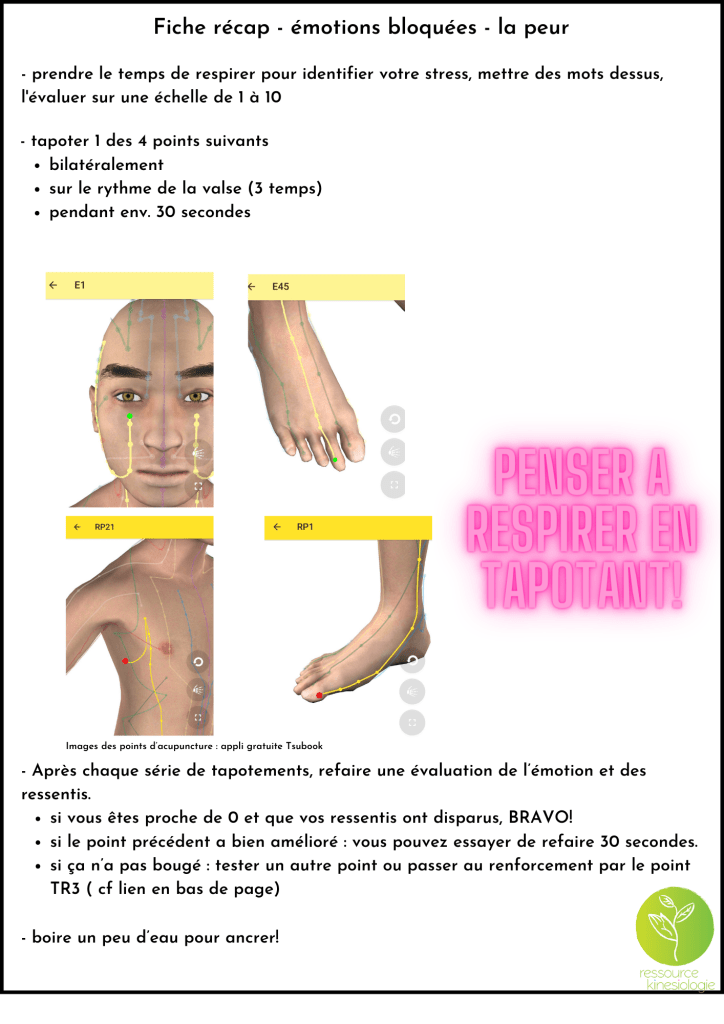 voici la fiche récap de la procédure et des points évoqués en séance pour vous aider à vous libérer de vos peurs