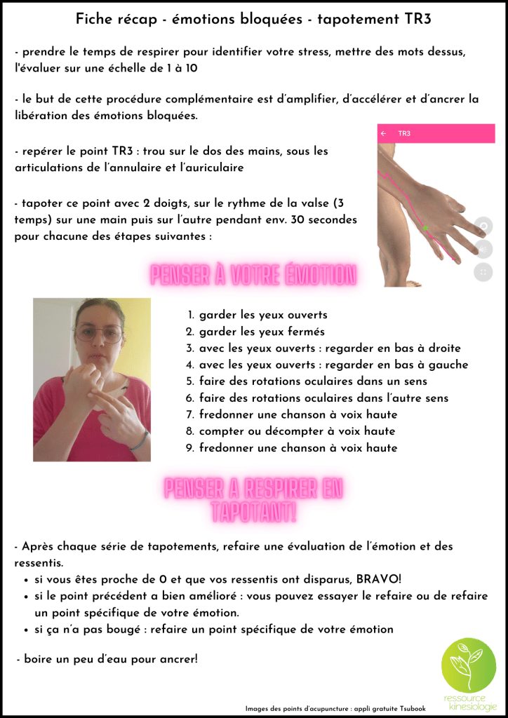 voici la fiche récap de la procédure et des points évoqués en séance pour vous aider à vous libérer de vos émotions bloquées.