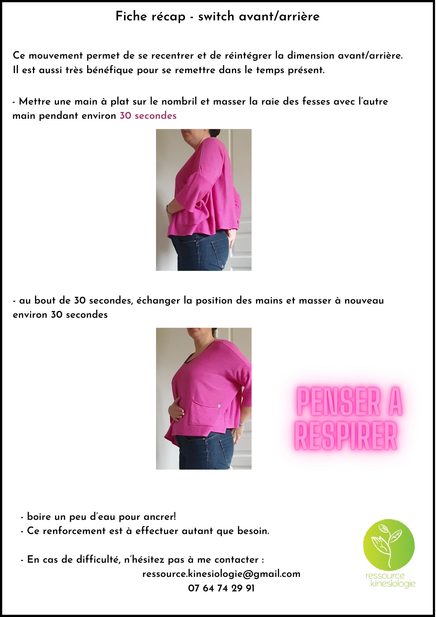 voici la fiche récap de la procédure et des points évoqués en séance pour vous aider à réintégrer la dimension avant/arrière.