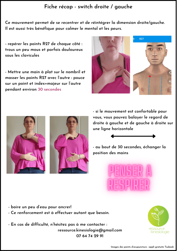 voici la fiche récap de la procédure et des points évoqués en séance pour vous aider à réintégrer la dimension droite/gauche.